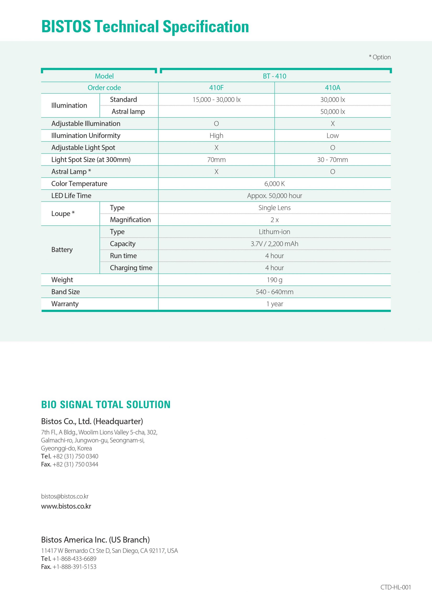 Bistos Medical Head Lamp – BT 410 Technical Specifications: