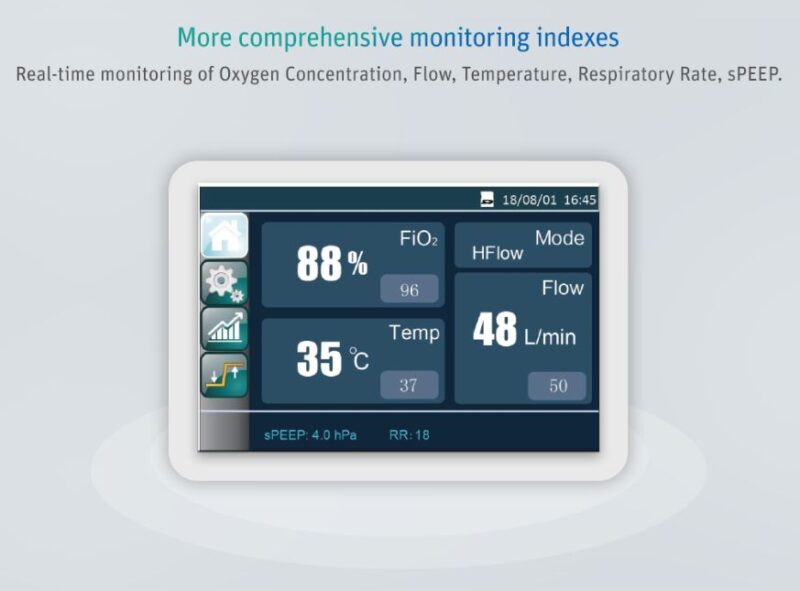 BMC H80A High Flow Oxygen Therapy Humidifier (HFNC) can provide a maximum of 80L / min air-oxygen mixed gas, oxygen concentration can be set automatically, providing an exclusive AutoFlow function, SmartFlow function. Disinfection-free design, Water chamber has a backflow prevention valve to prevent gas backflow.