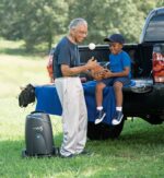 - Only 18.7 lbs, with an easy-to-attach traveling cart with telescoping handle and durable wheels.