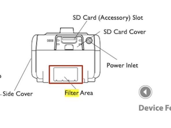- To install, insert gray foam filter into the filter area.