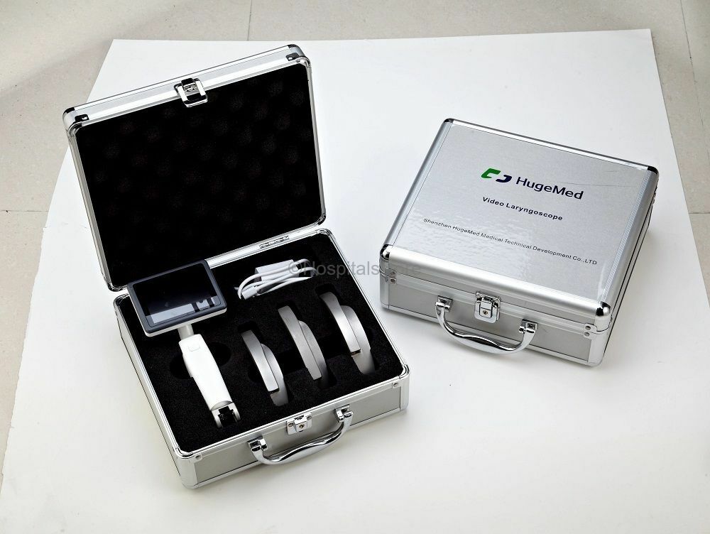 Hugemed Portable Video Laryngoscope comes with 2.0M pixels full-view camera, high-resolution monitor and unique anti-fog capability. 3 Blades Included! Reusable or Disposable bladed available.