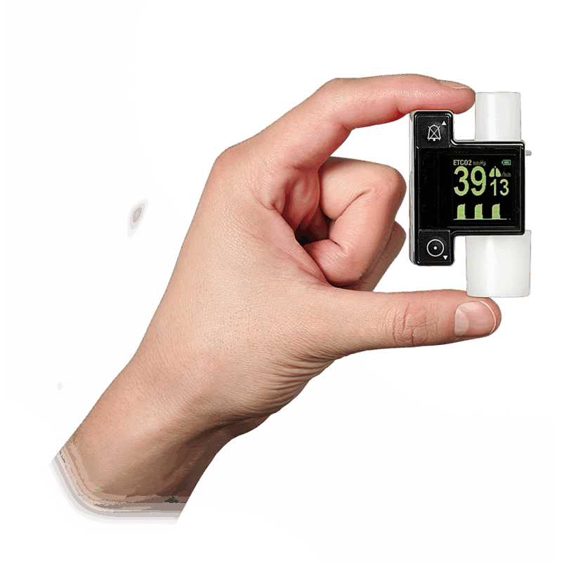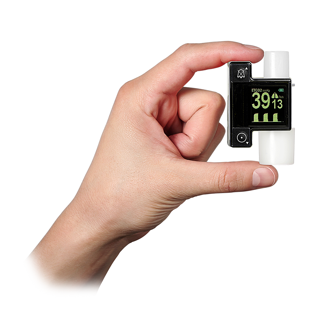 - Small, portable capnograph — lightweight design fits in the palm of your hand for mobility and convenience during short-term EtCO2 monitoring of adult, pediatric, and infant patients