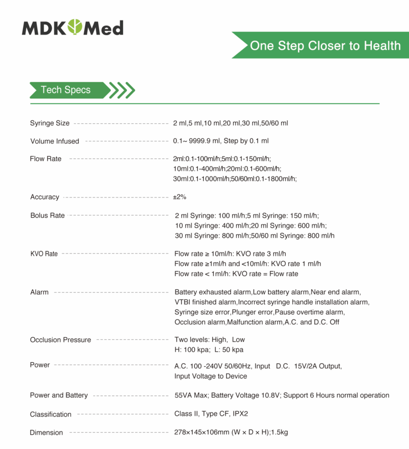 - Multiple injection models, to meet the injection needs of different departments and drugs.