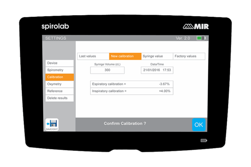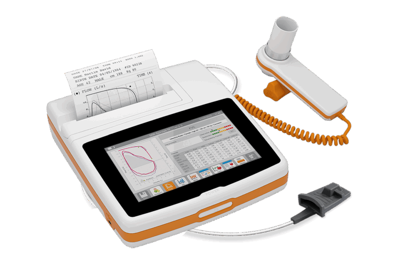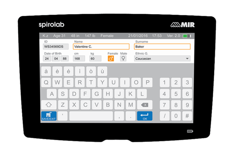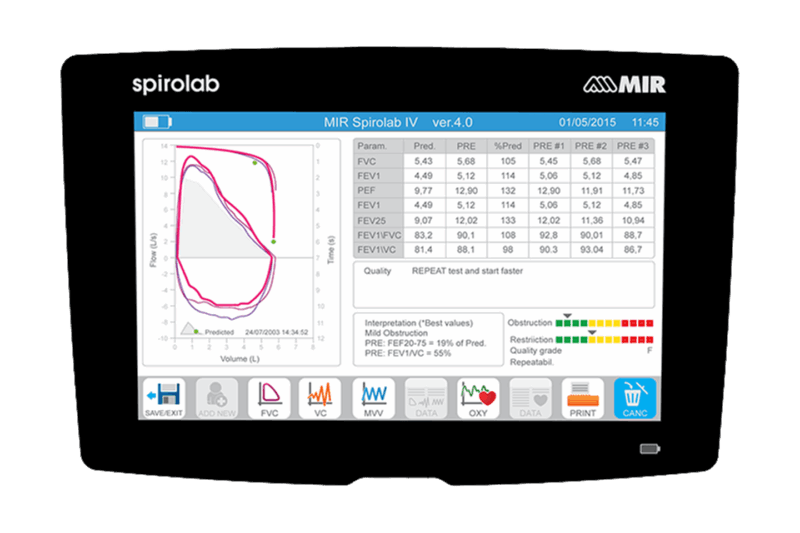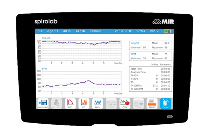 MIR Spirolab Touch Screen Portable Desktop Spirometer, also known unofficially as Spirolab 4, features a seven-inch TFT touch screen and a long-life rechargeable battery that makes it ideal for mobile and office spirometry.