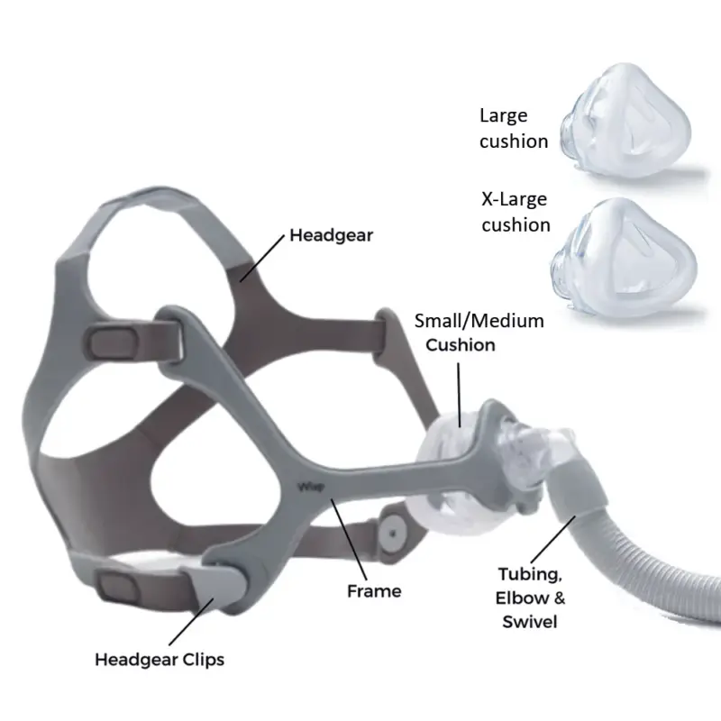 Looking for a compact, comfortable CPAP mask? The Philips Wisp Nasal Mask offers two frame options – Clear Frame and Fabric Frame – to suit your style and comfort. With multiple cushion sizes included, this mask is compatible with all CPAP & BiPAP machines, making it an excellent choice for users who want reliability and comfort.