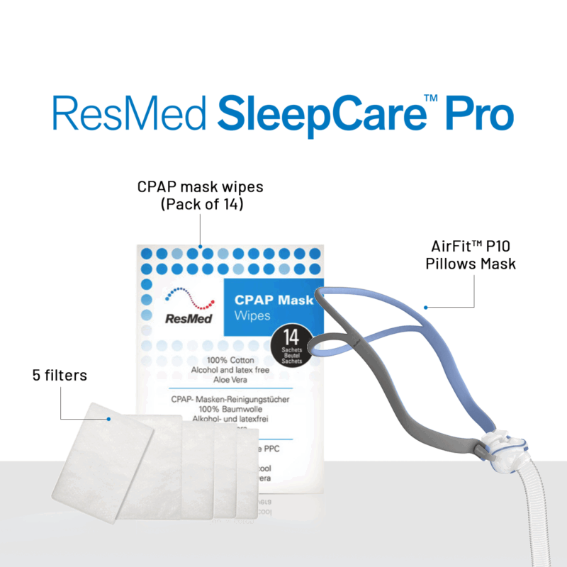 ResMed Airfit P10 CPAP Mask Sleepcare Pro Package (Includes P10 Mask Standard | 5 Filters | CPAP Wipes (Pack of 14) | ResMed Benefits)