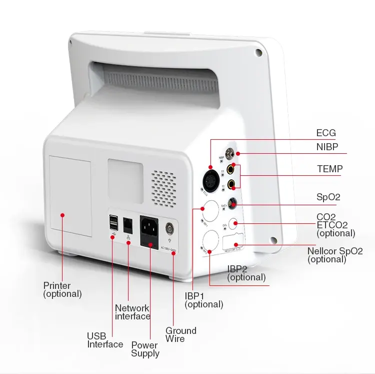 - Thermal Printer (Optional): Optional thermal printer for printing reports and patient data directly from the monitor.